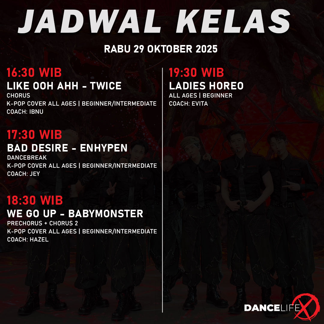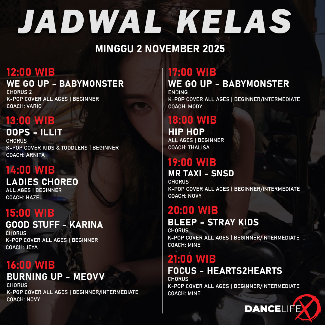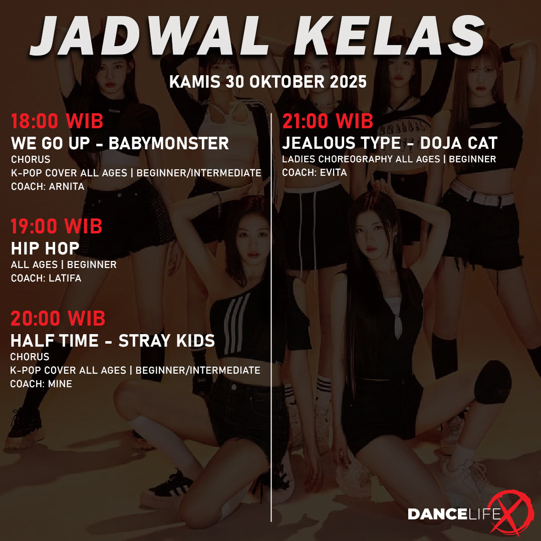 Paket kelas ini dapat digunakan untuk semua kelas di DanceLife X Indonesia. Harga diskon hanya berlaku untuk pembelian melalui halaman ini.